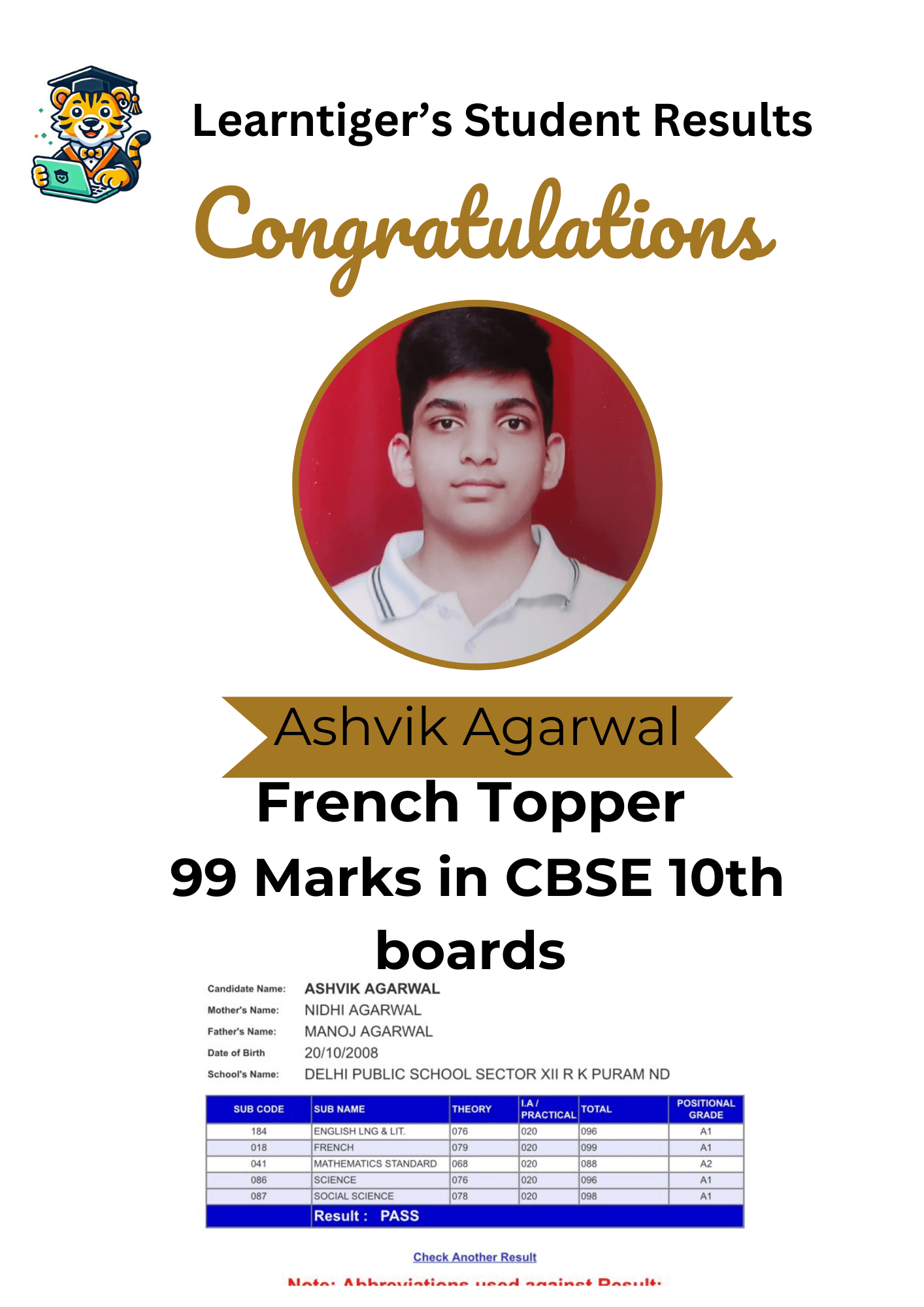 Student Review of Class 7th student Aradhya who is preparing for CBSE French exam with LearnTiger.com